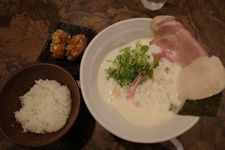 「極み鶏白湯そば(1080円)」+「唐揚げセット(420円)」